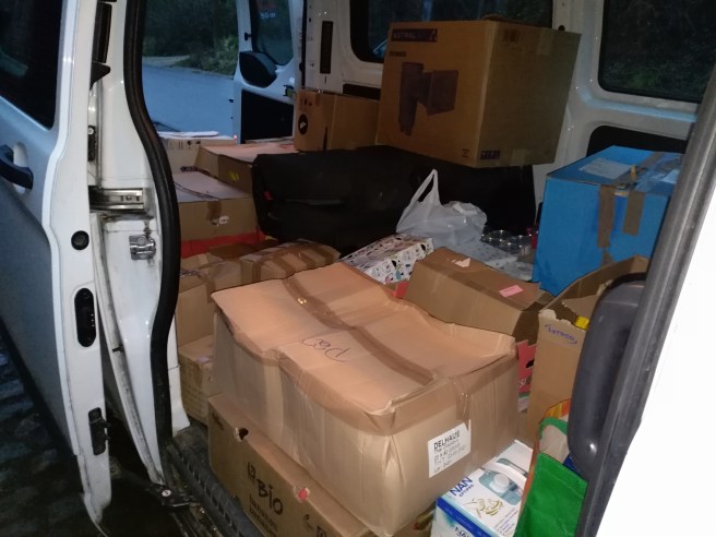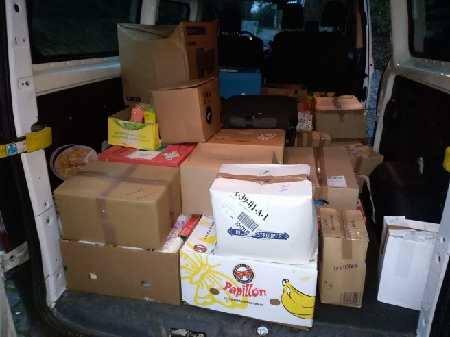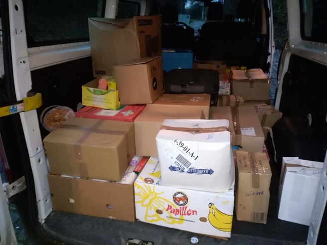 Le CPAS récupère le matériel informatique et Christine et Jean-François livrent le Resto du Cœur de Gembloux (Hélas, il n’y pas assez de produits pour livrer les deux Resto du Cœur)