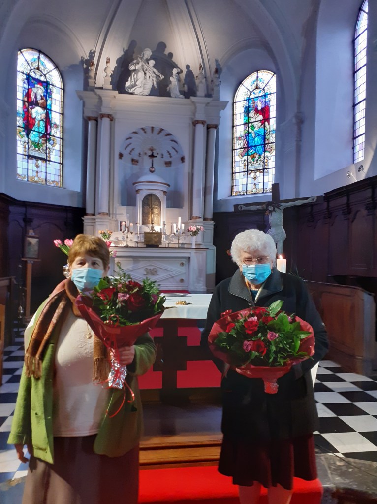 Depuis plus de 30 ans elles ont, toutes deux, grâce à leur travail discret et efficace, donné, avec une constance remarquable, à l’église du Rosaire l’aspect toujours propre, accueillant et fleuri que nous apprécions tous. Elles méritent toutes deux amplement la distinction qui leur est accordée par l’archevêque de Malines.