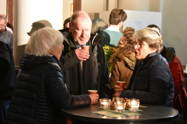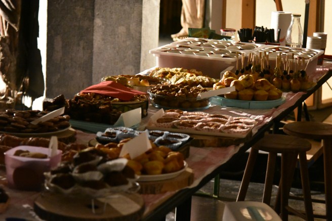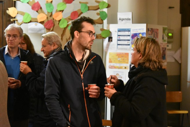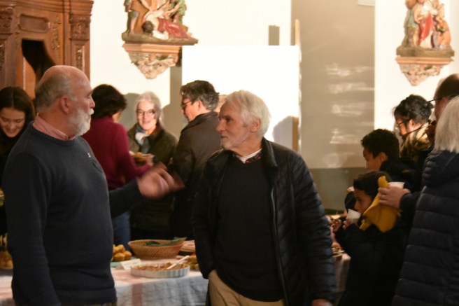 Au sous-sol s’échangeaient des mots dans l’intimité et la confidentialité sur les difficultés particulières vécues par les premiers arrivés alors que le rez-de-chaussée s’animait pour partager cookies, biscuits et café tout en préparant les friandises artisanales à vendre au prochain marché de Noël !