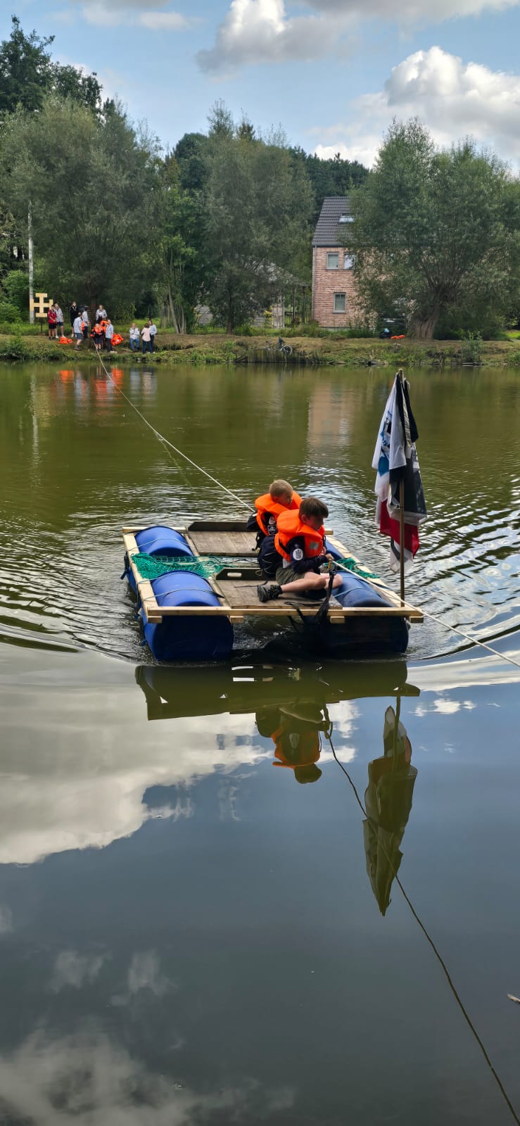 Cette année le passage a été marqué par la joyeuse traversée de l’étang de Gérompont sur le radeau fabriqué pour l’occasion. D’une rive à l’autre, par cette traversée les nouveaux étaient accueillis dans leur nouvelle section.