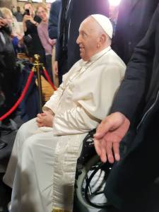Nos jeunes, lors de la prière du soir, ont eu la grande surprise de voir arriver le pape François ….