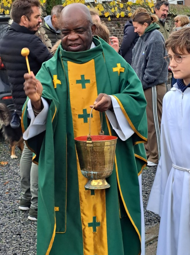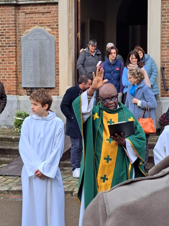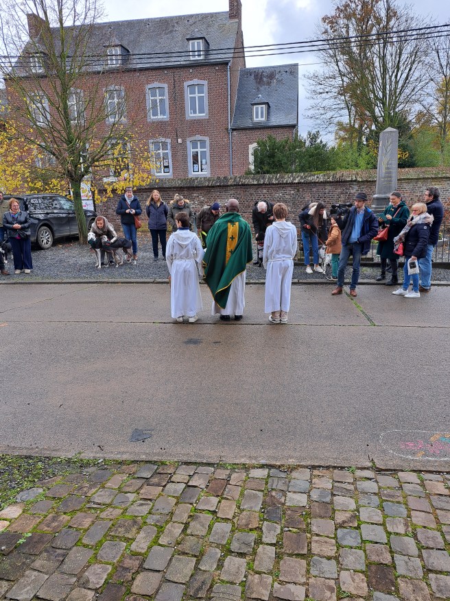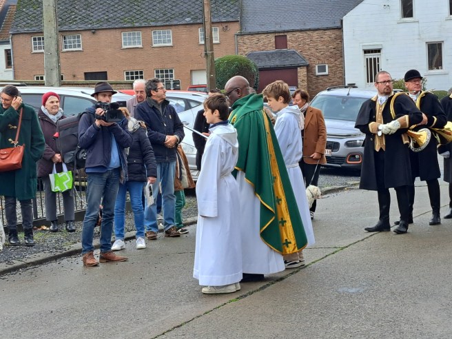 La célébration « sonnée » du dimanche 17 novembre dédiée à Saint-Hubert a été suivie par la bénédiction sur le parvis de l’église.
