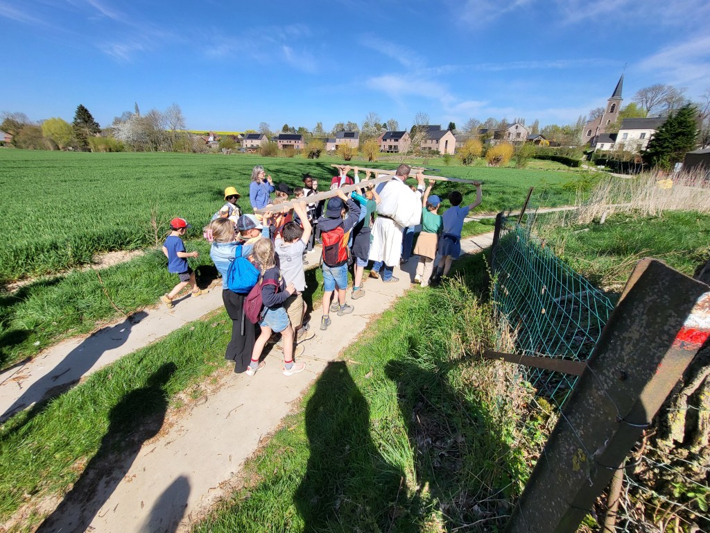 Ce samedi 5 avril, les enfants de la catéchèse, ainsi que leurs parents se sont réunis pour marcher ensemble dans un parcours raconté autour de la semaine Sainte.