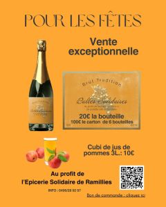 Pour fêter ses 3 ans d’existence, L’Épicerie Solidaire & Parlotte Café de Ramillies organise une vente exceptionnelle de Brut Tradition et de cubis de jus de pommes !