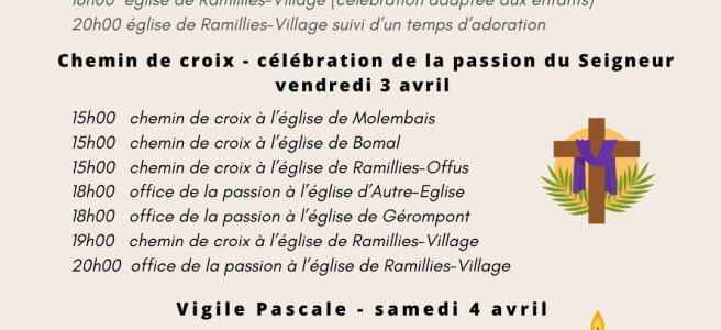 « Allons au désert, y chercher un puits… » Cette veillée de prière et de chants, organisée par les trois équipes paroissiales de Ramillies pour notre unité pastorale, nous invite à faire une halte au cœur du Carême pour nous recentrer sur l’essentiel et laisser la Parole de Dieu désaltérer notre soif intérieure. Animée par … Lire la suite Veillée de prière et de chants : « Allons au désert, y chercher un puits… »